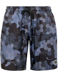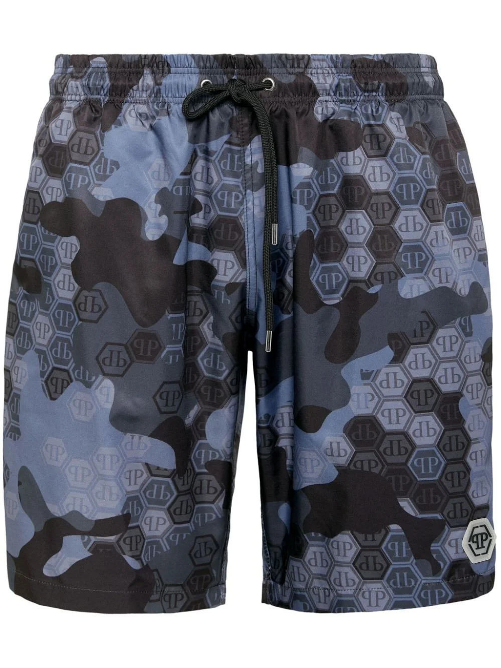 monogram pattern swim shorts Highlights - Midnight blue - Monogram pattern - Camouflage pattern - Elasticated drawstring waistband - Two side slit pockets - Be mindful to try on swimwear over your own garments. Imported Composition Polyester 100%