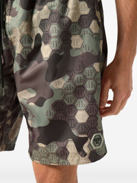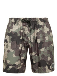 monogram pattern swim shorts Highlights - Taupe brown - Monogram pattern - Camouflage pattern - Elasticated drawstring waistband - Two side slit pockets - Be mindful to try on swimwear over your own garments. Imported Composition Polyester 100%