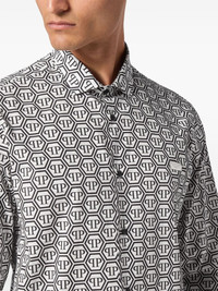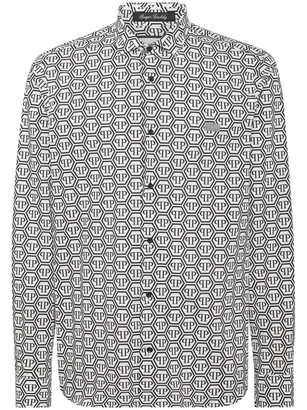 monogram-print shirt Highlights - Black - Stretch-cotton - Front button fastening - Monogram print - Silver-tone logo plaque - Long sleeves - Buttoned cuffs - Rear curved hem Made in Italy Composition Cotton 97%, Elastane 3%