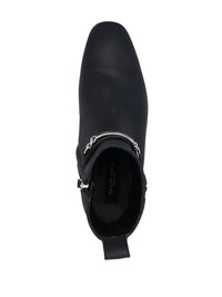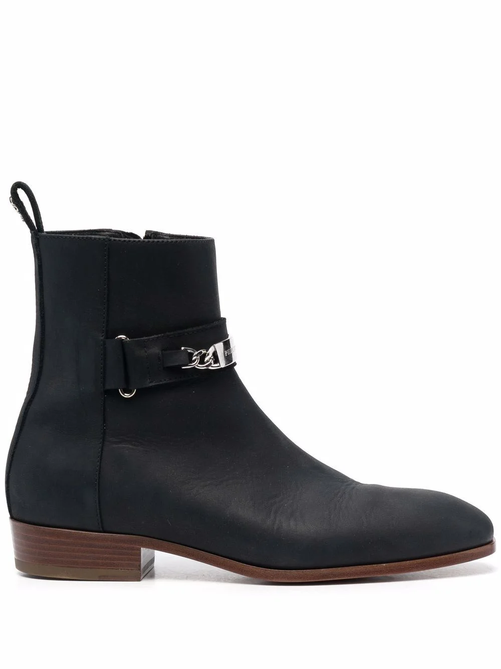 Nabuk leather ankle boots black leather silver-tone logo plaque almond toe side zip fastening ankle-length pull-tab at the heel branded insole low block heel Made in Italy Composition Outer: Leather 100% Lining: Leather 100% Sole: Leather 100% SIZE & FIT Measurement CIRCUMFERENCE 9.44 in(24 cm) HEEL 1.18 in(3 cm) HEIGHT 6.69 in(17 cm)
