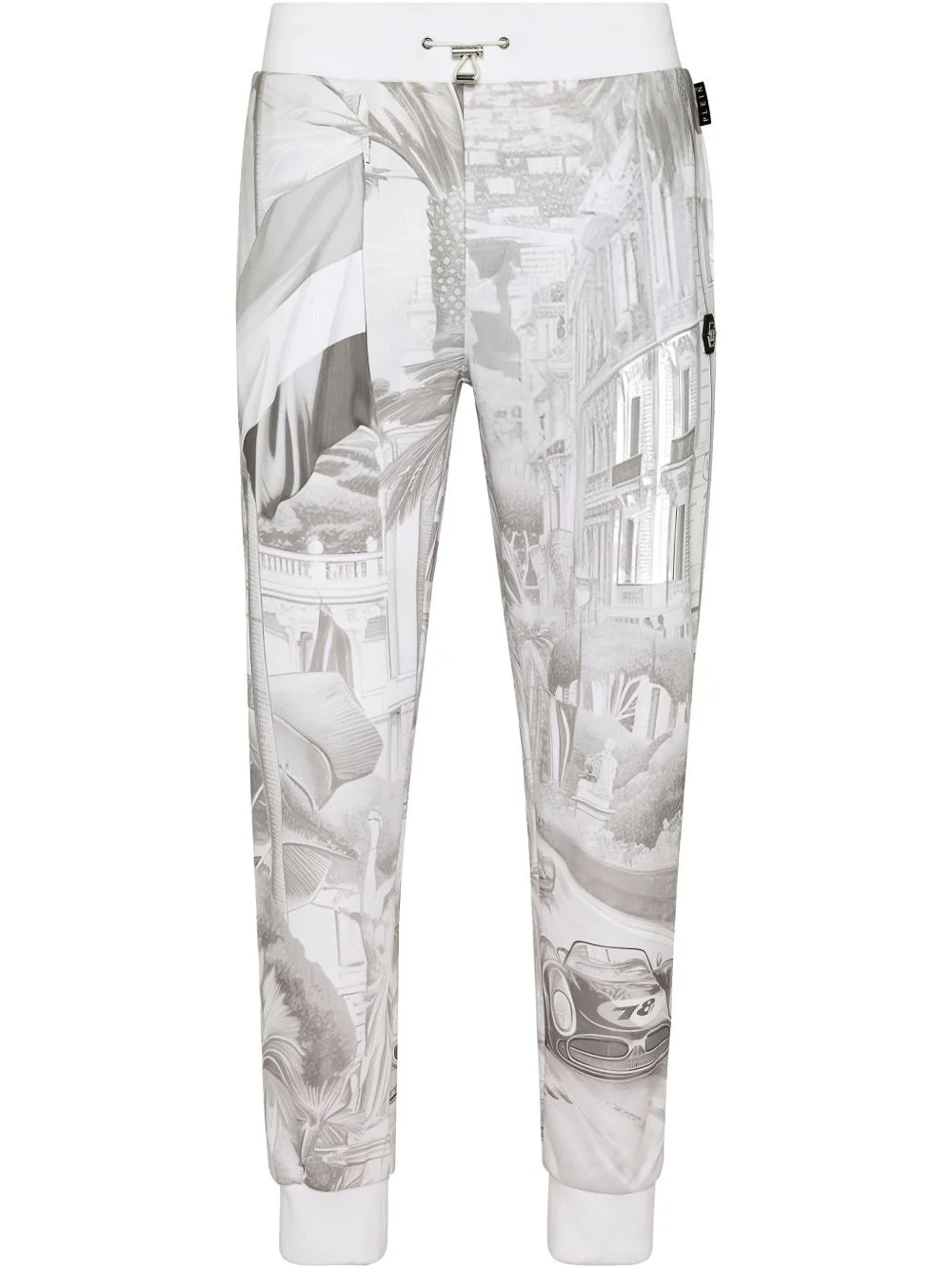 New Montecarlo track pants Highlights - Light grey - Elasticated drawstring waistband - Two side slit pockets - Rear welt pocket - All-over graphic print Imported Composition Polyester 100%