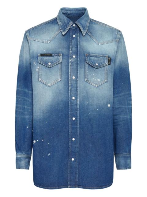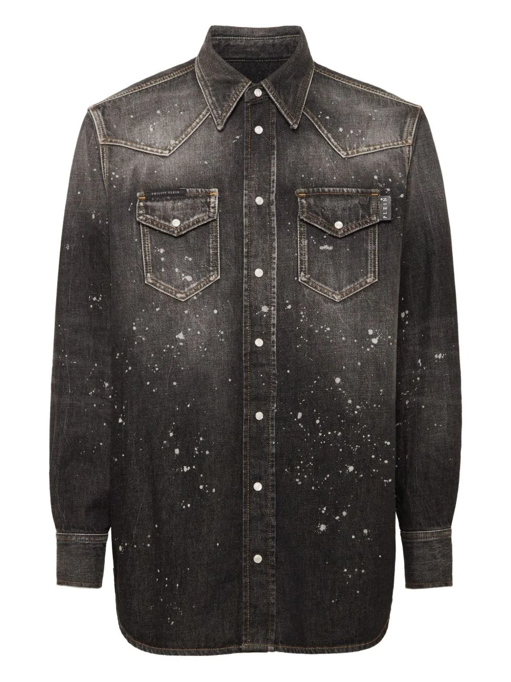 oversized denim shirt Highlights - Black - Front press-stud fastening - Two chest flap pockets - Press-stud fastening cuffs - Curved hem Made in Italy Composition Fabric 100%