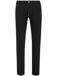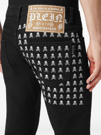 paint-splatter straight-leg jeans Highlights - Black - Stretch-cotton - Denim - Logo patch to the rear - Skull embroidery to the rear - Paint splatter detail - Belt loops - Straight leg - Button fly fastening - Classic five pockets Imported Composition Cotton 98%, Elastane 2% Washing instructions Read Manufacturer Guidelines