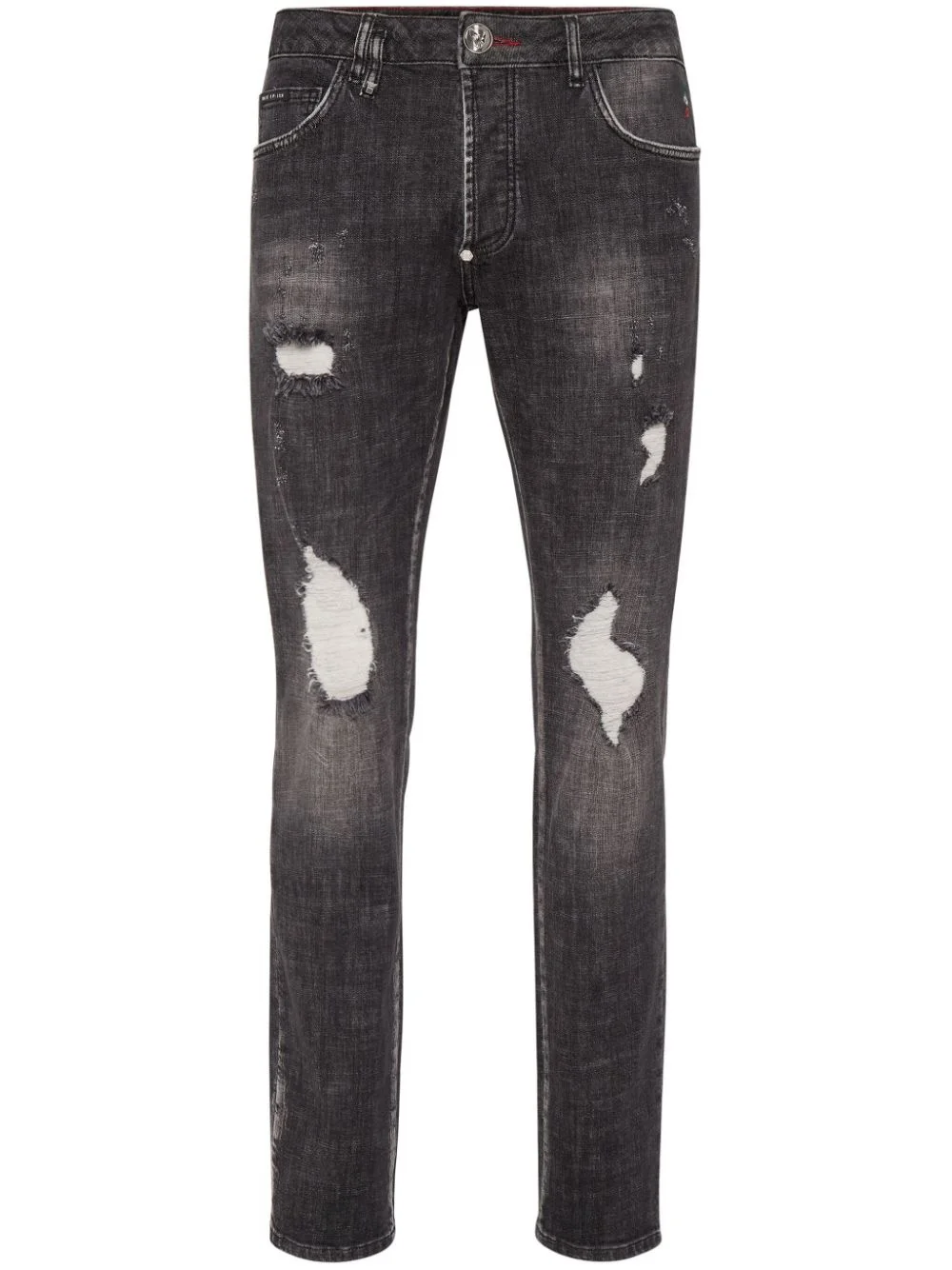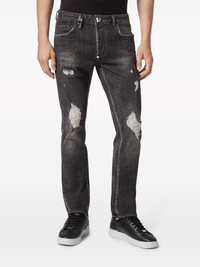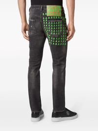 paint-splatter straight-leg jeans Highlights - Black - Stretch-cotton - Denim - Distressed finish - Logo patch to the rear - Skull embroidery to the rear - Paint splatter detail - Belt loops - Straight leg - Button fly fastening - Classic five pockets Imported Composition Cotton 98%, Elastane 2% Washing instructions Read Manufacturer Guidelines