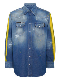 paint-splattered denim shirt Highlights - Blue - Painted details - Pointed collar - Front pockets - Front snap fastening - Long sleeves Made in Italy Composition Fabric 100%