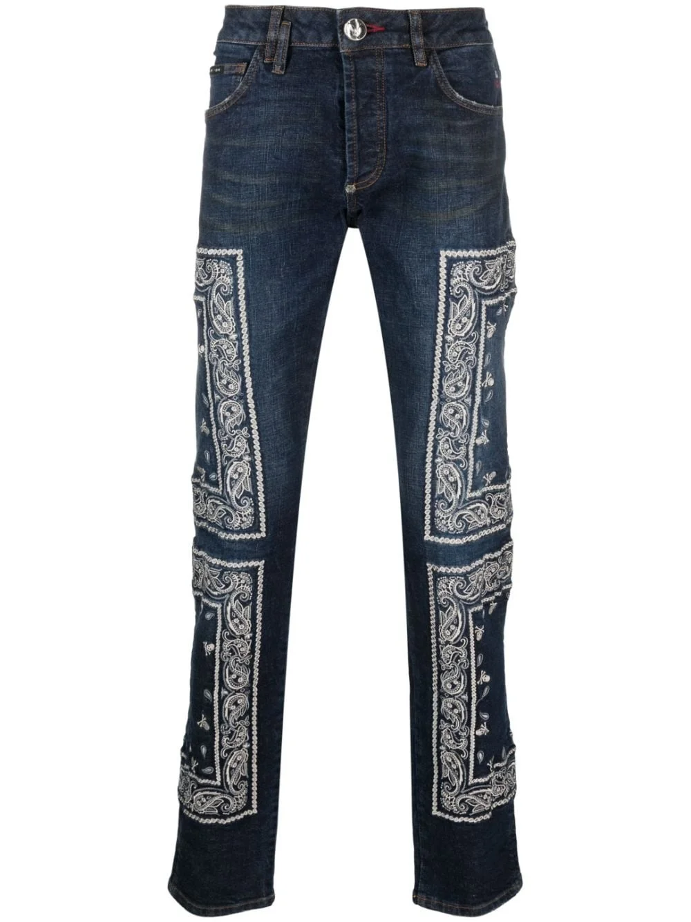 paisley-embroidered straight-leg jeans Highlights - Indigo blue/milk white - Stretch-cotton - Embroidered paisley motif - Mid-rise - Belt loops - Concealed fly and button fastening - Classic five pockets - Straight leg Imported Composition Lining: Polyester 65%, Cotton 35% Outer: Cotton 98%, Elastane 2% SIZE & FIT Model measurements Height 6 ft 2 in(1.87 m) Bust/Chest 38.18 in(97 cm) Hips 36.61 in(93 cm) Waist 29.13 in(74 cm) FittingInformation Designed with a straight leg, these jeans allow for an unrestricted and comfortable fit over the leg Constructed from stretch denim, this piece offers a stretch fit with durability This piece fits true to size – take your usual size Washing instructions Do Not Wash/Do Not Dry Clean