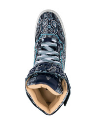 paisley-print hi-top sneakers Highlights - Navy blue - Calf leather - Paisley print - Logo patch at the tongue - Silver-tone logo plaque - Round toe - Front lace-up fastening - Press-stud fastening - Branded insole - Flat rubber sole Made in Italy Composition Leather 100% SIZE & FIT Measurement HEEL 1.57 in(4 cm) Sole height 1.18 in(3 cm) HEIGHT 4.72 in(12 cm)