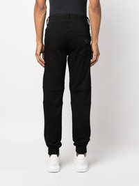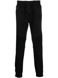 panelled-design denim track pants Highlights - Jet black - Stretch-cotton - Panelled design - Tonal logo plaque - Belt loops - Elasticated drawstring waistband - Classic five pockets - Tapered leg - Elasticated ankles Imported Composition Outer: Cotton 98%, Elastane 2% Lining: Polyester 65%, Cotton 35% SIZE & FIT Model measurements Height 6 ft 2 in(1.87 m) Bust/Chest 38.18 in(97 cm) Hips 36.61 in(93 cm) Waist 29.13 in(74 cm) FittingInformation Designed for a slim tapered leg, offering a close fit that sits just away from the leg with a closer fit towards the ankle Adjust this piece’s waistband to your preference using the drawstring Made from a midweight stretch fabric, this piece offers elasticity and flexibility when worn This piece fits true to size – take your usual size Washing instructions Do Not Wash/Do Not Dry Clean