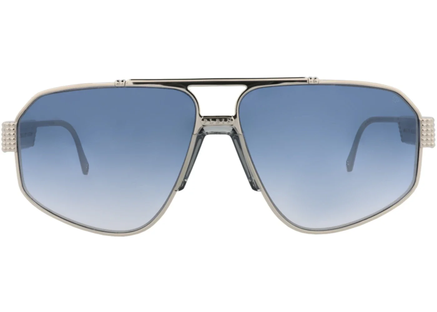 Philipp Plein Aviator-Frame Titanium Sunglasses Palladium Palladium Blue (SPP106M-63-0579)