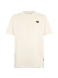 round-neck monogram T-shirt Highlights - Beige - Cotton - Embossed monogram pattern - Round neck - Short sleeves - Applique logo Imported Composition Cotton 100% Washing instructions Read Manufacturer Guidelines