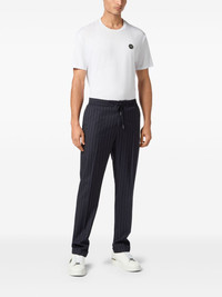 pinstriped track pants Highlights - Navy blue - Concealed front fastening - Drawstring fastening waist - Two side inset pockets - Two rear jetted pockets Made in Italy Composition Lining: Polyamide 65%, Cotton 35% Outer: Virgin Wool 100%