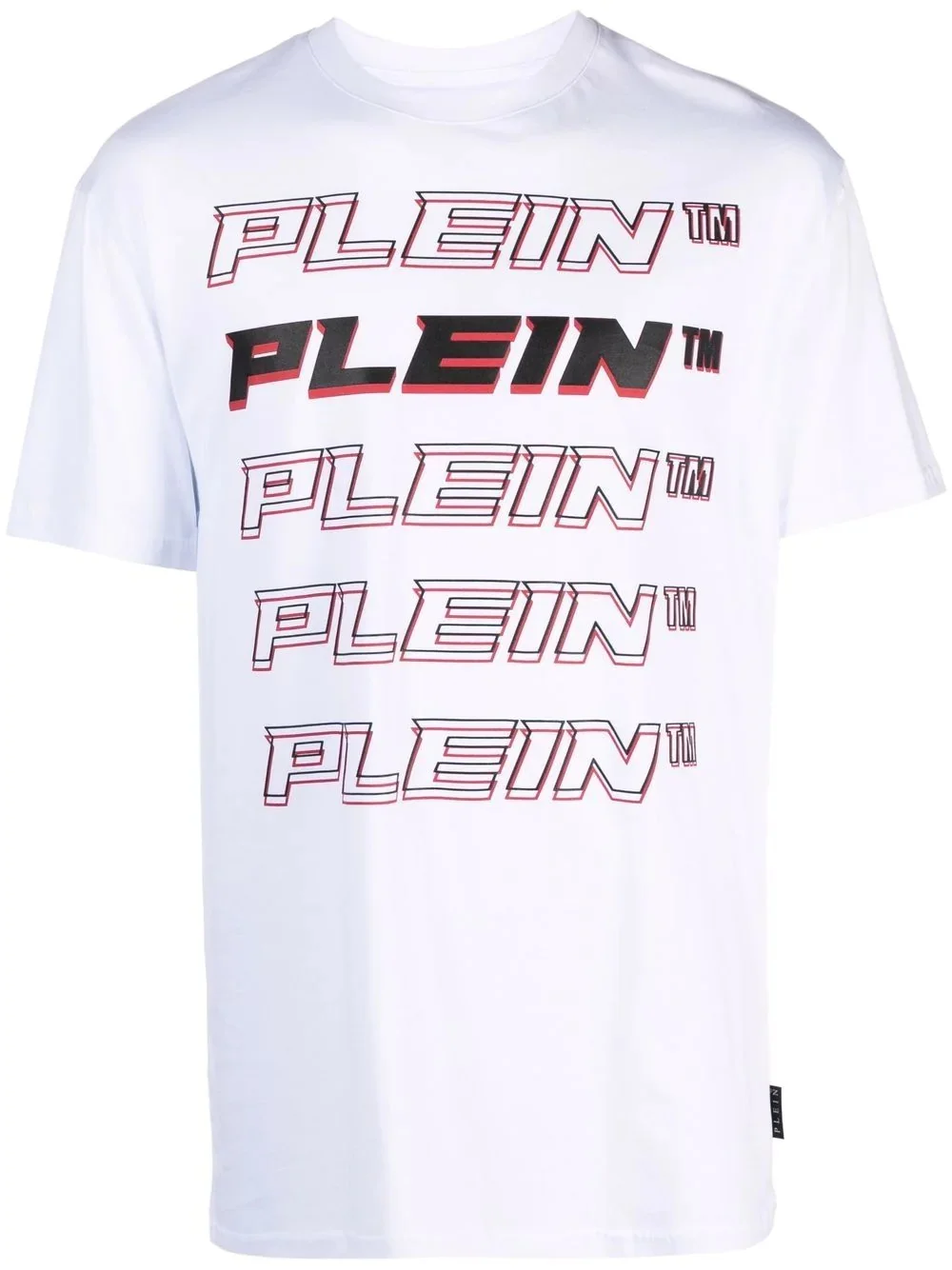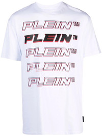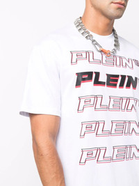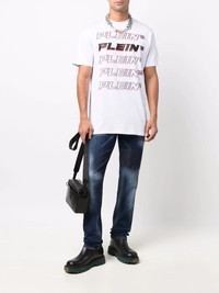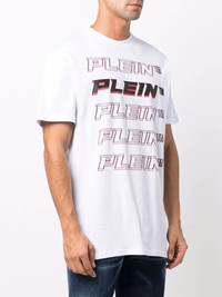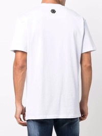 Plein repeat logo T-shirt white cotton logo print to the front logo patch to the rear round neck short sleeves straight hem Imported Composition Cotton 100% SIZE & FIT Model measurements Height 6 ft 1 in(1.85 m) Bust/Chest 37.79 in(96 cm) Hips 37.4 in(95 cm) Waist 30.7 in(78 cm) FittingInformation This piece fits true to size. We recommend you get your regular size Cut for a relaxed fit Made with a mid-weight fabric Washing instructions Hand Wash