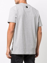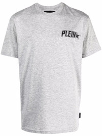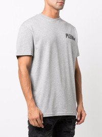 Plein Star logo print T-shirt grey cotton blend ribbed detailing logo print at the chest logo patch to the rear round neck short sleeves straight hem Imported Composition Polyester 70%, Cotton 30% SIZE & FIT Model measurements Height 6 ft 1 in(1.85 m) Bust/Chest 37.79 in(96 cm) Hips 37.4 in(95 cm) Waist 30.7 in(78 cm) FittingInformation This piece fits true to size. We recommend you get your regular size Cut for a relaxed fit Made with a mid-weight fabric Washing instructions Hand Wash