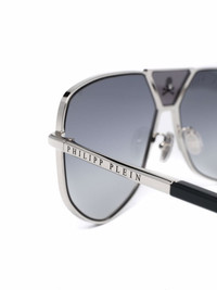 Power Skull sunglasses silver-tone/blue metal/acetate skull stud embellishment blue gradient lenses logo-engraved arm These glasses come with a protective case. Made in Italy Composition Metal 100%, Acetate 100% SIZE & FIT Measurement Arm Length 5.7 in(14.5 cm) Bridge Width 0.55 in(1.4 cm) Lens Diameter 2.4 in(6.1 cm) Total Width 5.82 in(14.8 cm)
