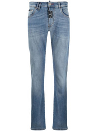 Premium-Hexagon straight-fit jeans blue cotton blend stretch-design belt loops button fly fastening classic five pockets logo patch to the rear straight leg Made in Italy Composition Outer: Calf Leather 100%, Cotton 98%, Spandex/Elastane 2% Lining: Polyester 65%, Cotton 35% SIZE & FIT Model measurements Height 6 ft 2 in(1.87 m) Bust/Chest 36.41 in(92.5 cm) Hips 37 in(94 cm) Waist 29.52 in(75 cm) FittingInformation This piece fits true to size. We recommend you get your regular size Cut for a slim fit Made with a mid-weight stretch fabric Washing instructions Machine Wash