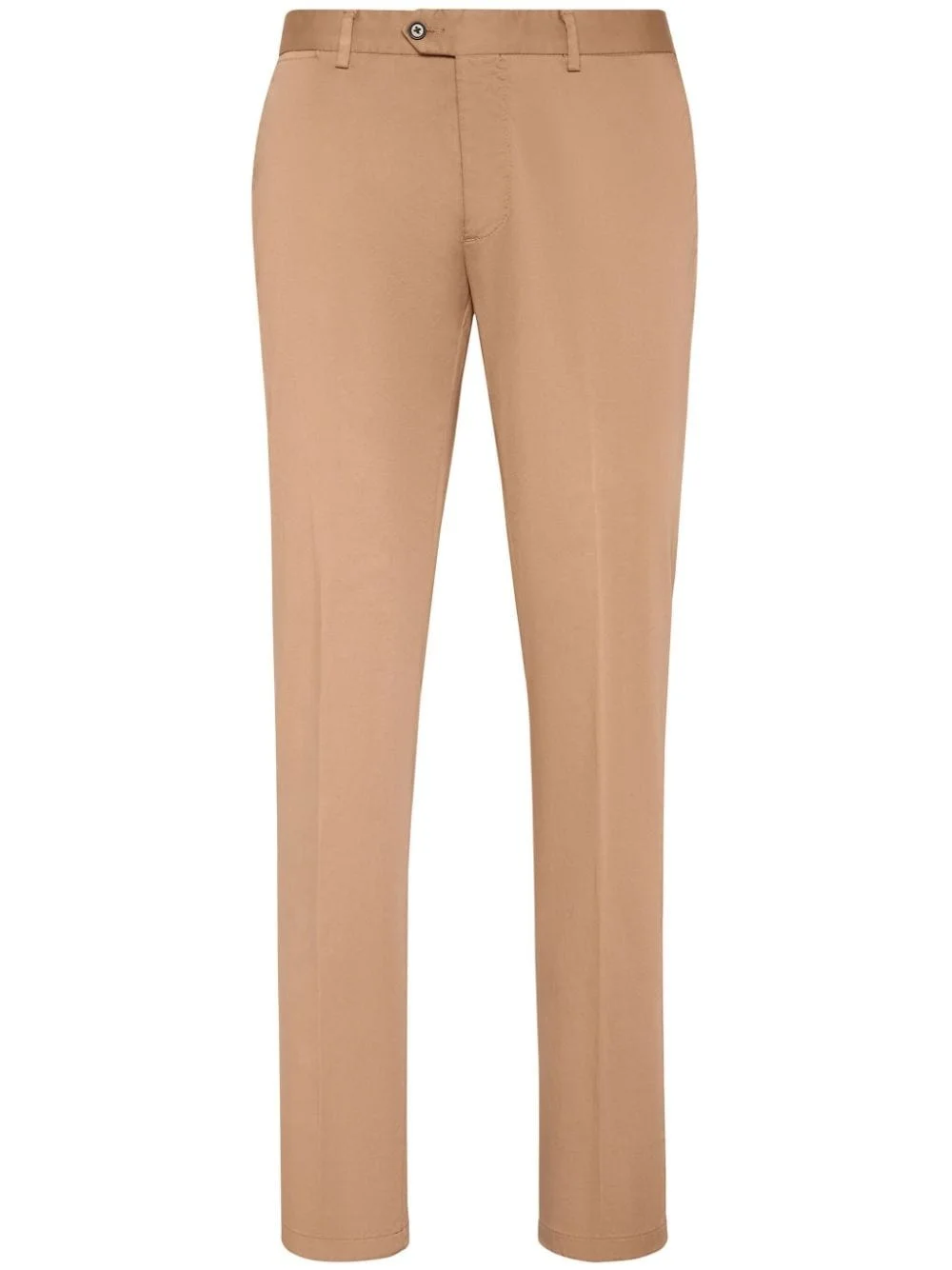 pressed-crease cotton chinos Highlights - Beige - Belt loops - Front button and zip fastening - Slim cut - Two side slit pockets - Two rear welt pockets Made in Italy Composition Cotton 98%, Elastane 2%