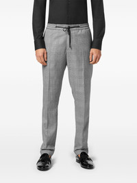 Prince of Wales-check trousers Highlights - Light grey - Elasticated drawstring waistband - Two diagonal pockets to the sides - Two rear welt pockets Made in Italy Composition Outer: Polyester 68%, Viscose 30%, Elastane 2% Lining: Polyamide 65%, Cotton 35%