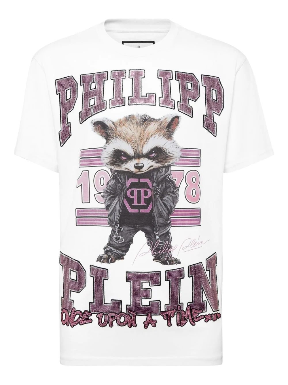 raccoon-print rhinestone T-shirt Highlights - White - Raccoon graphic - Rhinestone embellishments - Crew neck - Short sleeves - '1978' print - 'once upon a time'-print Imported Composition Cotton 100%, Glass Fiber 100% Washing instructions Read Manufacturer Guidelines