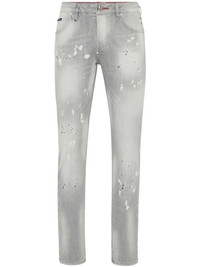 Racing Club jeans Highlights - Light grey - Concealed front fastening - Belt loops - Classic five pockets - Paint splatter detail Imported Composition Outer: Calf Leather 100%, Cotton 98%, Elastane 2% Lining: Polyester 65%, Cotton 35%