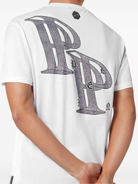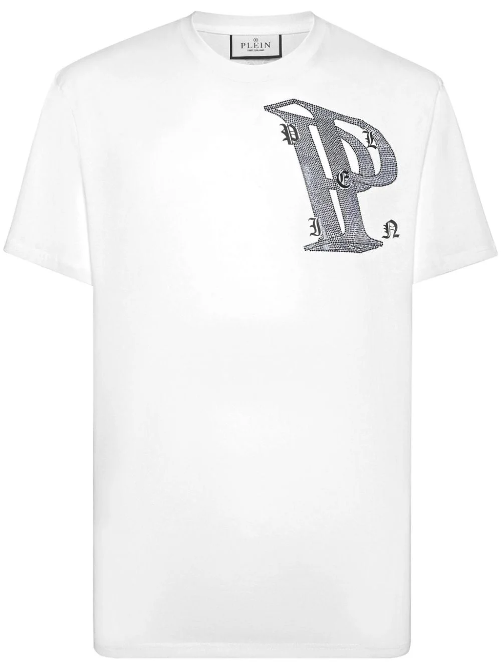 rhinestone-embellished cotton T-shirt Highlights - White - Cotton - Crew neck - Rhinestone embellishment - Logo embellishment - Short sleeves - Straight hem Imported Composition Cotton 100%