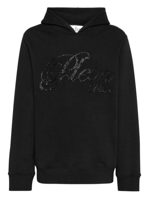 rhinestone-embellished hoodie Highlights - Black - Rhinestone-embellished logo - Long sleeves - Classic hood - Ribbed cuffs and hem Imported Composition Fabric 100% Washing instructions Read Manufacturer Guidelines