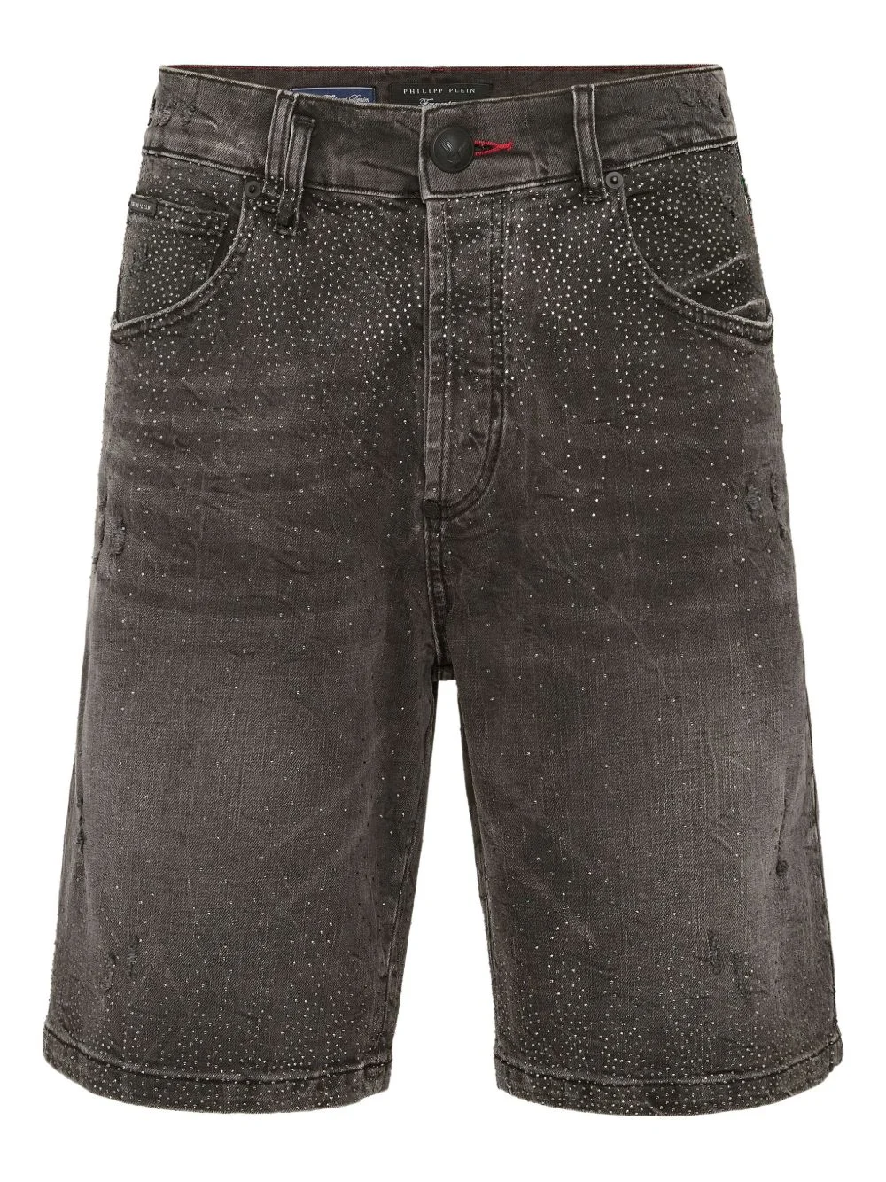 rhinestone-embellished shorts Highlights - Black - Front button fastening - Belt loops - Classic five pockets - Logo plaque Made in Italy Composition Cotton 98%, Elastane 2% Washing instructions Read Manufacturer Guidelines