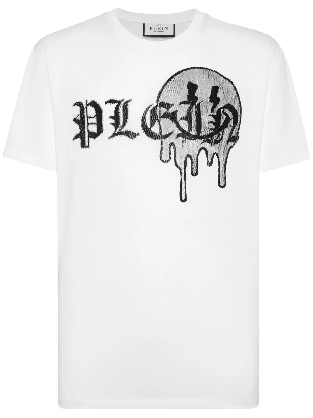rhinestone-logo cotton T-shirt Highlights - White/black - Cotton - Rhinestone embellishment - Logo print to the front - Smiley face print - Round neck - Short sleeves - Straight hem Imported Composition Cotton 100%, Glass Fiber 100%