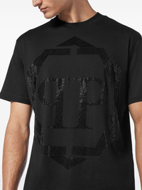 rhinestone-logo cotton t-shirt Highlights - Black - Cotton - Jersey texture - Rhinestone logo - Round neck - Short sleeves - Straight hem Imported Composition Cotton 100%, Glass Fiber 100%