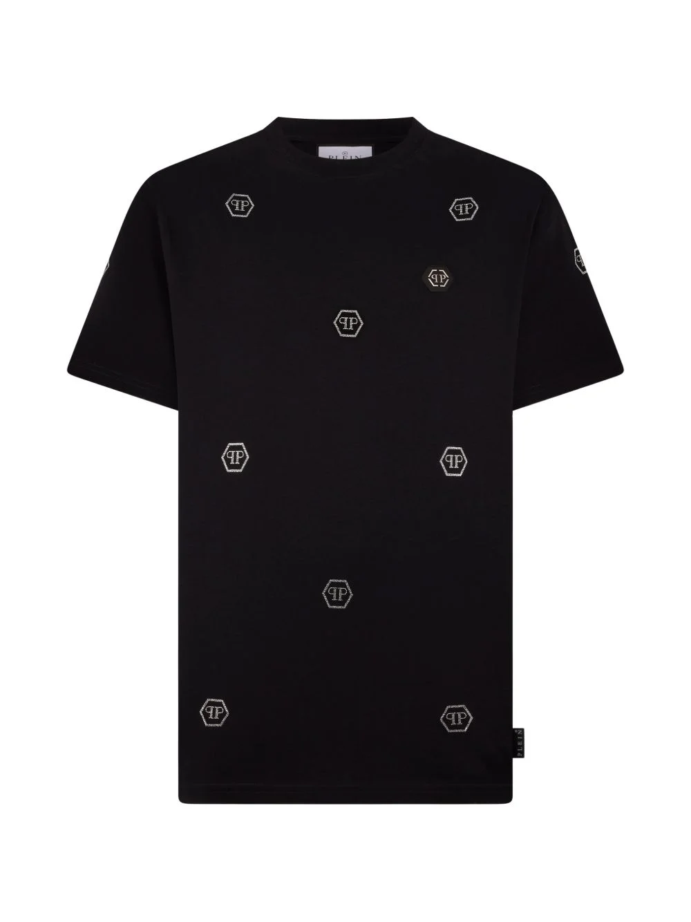 rhinestones monogram T-shirt Highlights - Black - Rhinestone embellishment - Logo patch - Short sleeves - Round neck Imported Composition Cotton 100%, Rhinestone 100% Washing instructions Read Manufacturer Guidelines