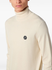 ribbed-knit jumper Highlights - Ivory white - Ribbed texture - Signature logo patch - Long sleeves - Roll neck Made in Italy Composition Merino 50%, Silk 50% Washing instructions Read Manufacturer Guidelines
