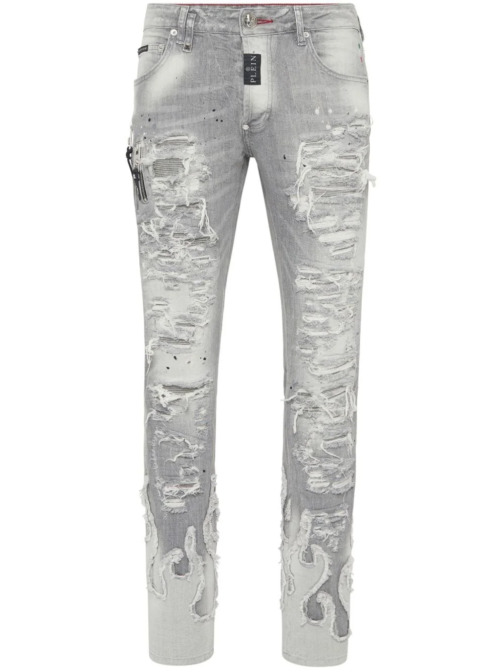 Rock Star jeans Highlights - Light grey - Concealed fly and button fastening - Classic five pockets - Ripped detailing - Paint splatter detail Imported Composition Outer: Calf Leather 100%, Cotton 98%, Elastane 2% Lining: Polyester 65%, Cotton 35%