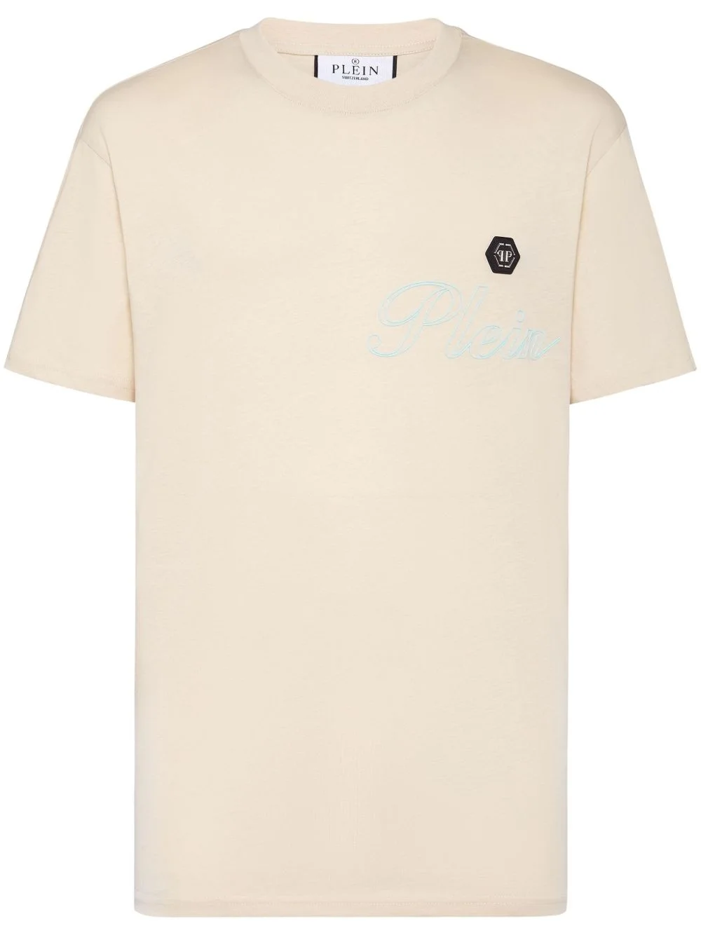 round-neck jersey T-shirt Highlights - Light beige - Embroidered logo at the chest - Short sleeves - Straight hem Imported Composition Cotton 100%