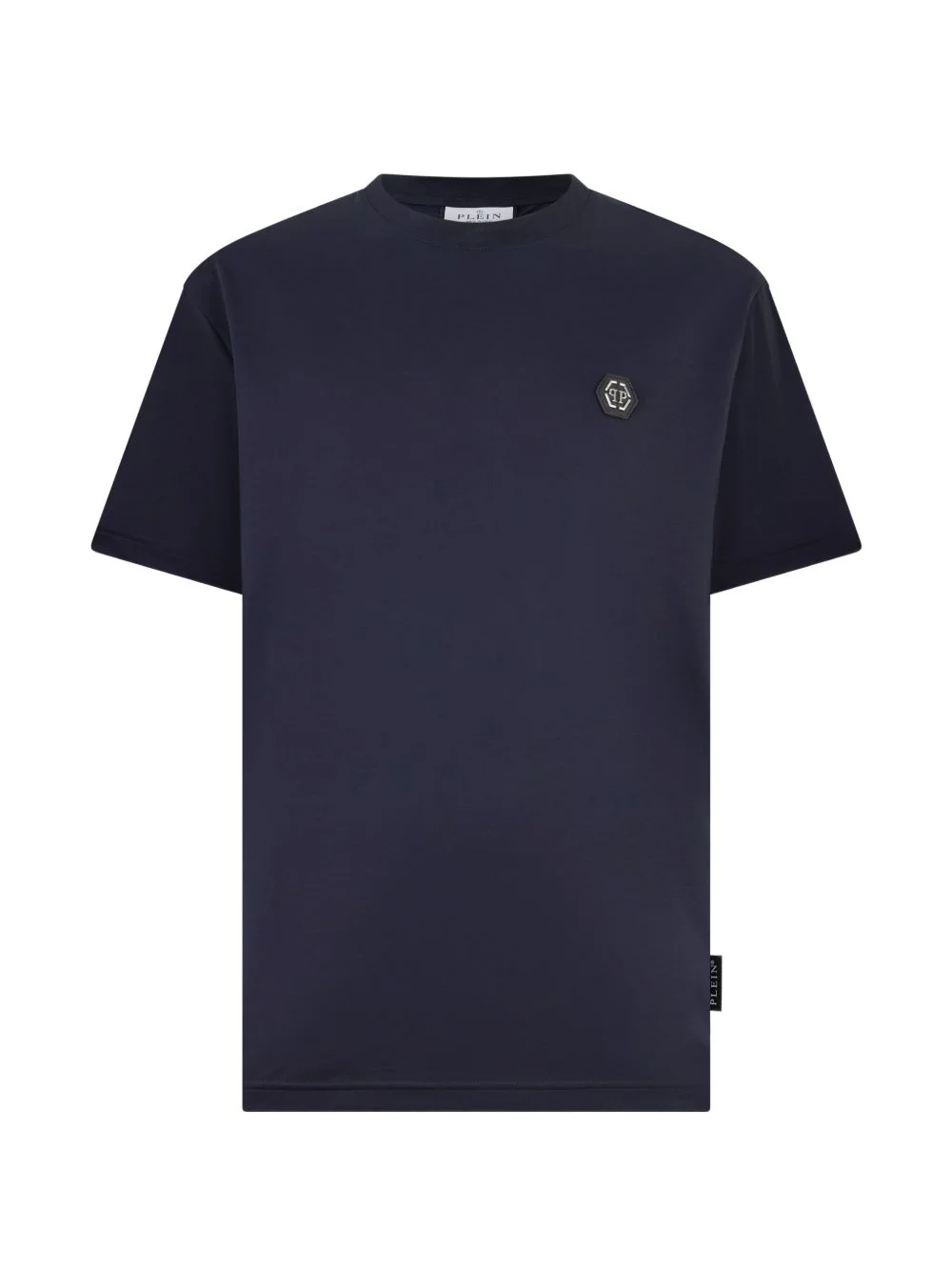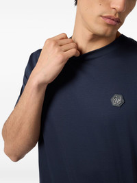 round-neck logo-applique T-shirt Highlights - Navy blue - Round neck - Short sleeves - Applique logo - Straight hem Made in Italy Composition Cotton 100% Washing instructions Read Manufacturer Guidelines