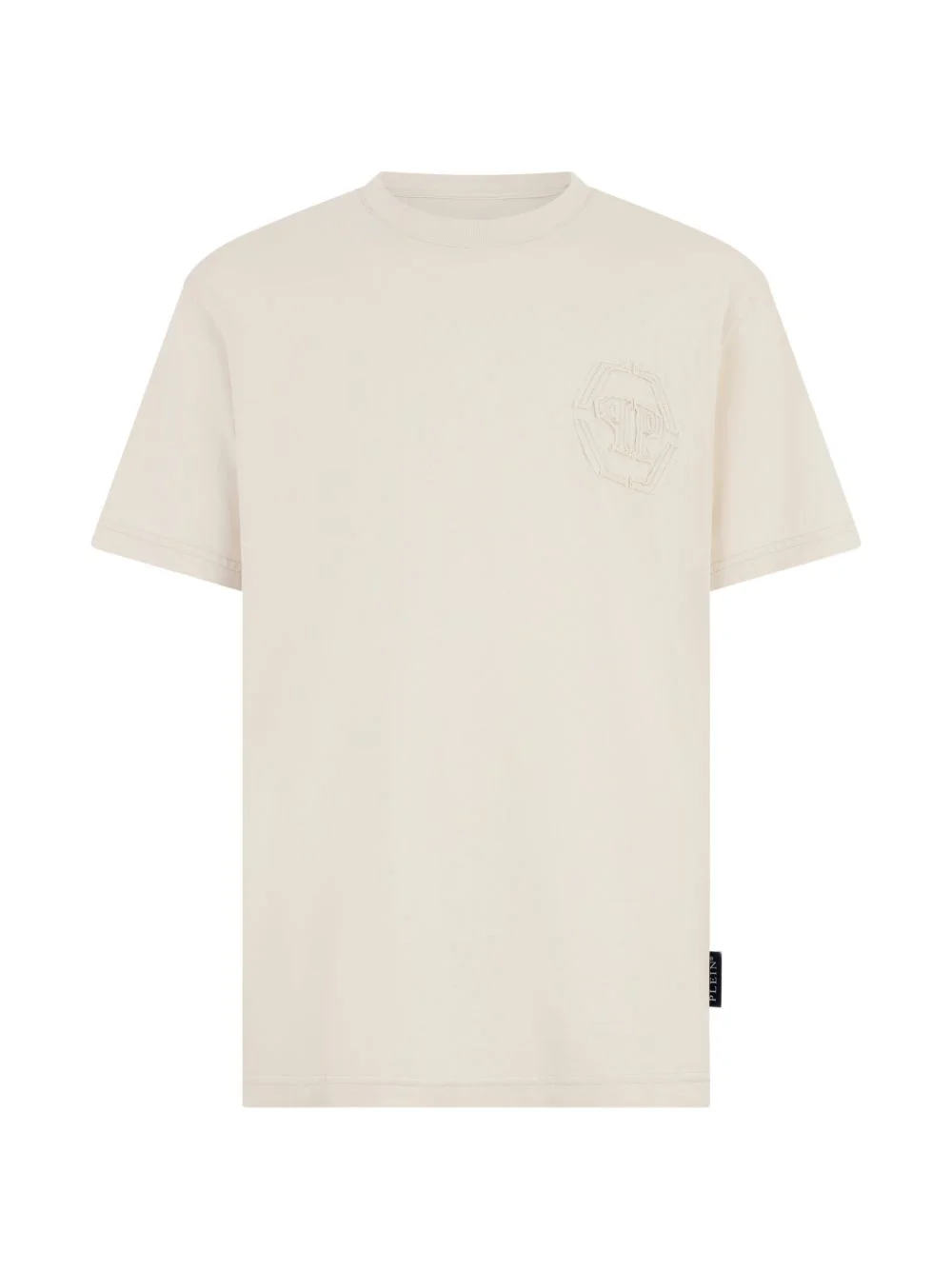round-neck monogram T-shirt Highlights - Beige - Cotton - Raw edge - Round neck - Short sleeves - Monogram detail Made in Italy Composition Cotton 100% Washing instructions Read Manufacturer Guidelines