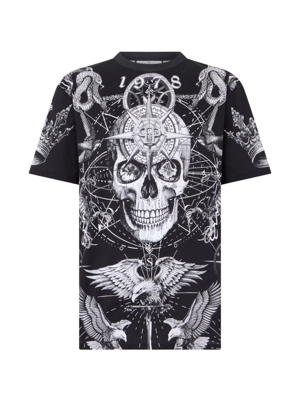 round-neck printed T-shirt Highlights - Black - Skull print - Round neck - Short sleeves - All-over graphic print Imported Composition Cotton 100% Washing instructions Read Manufacturer Guidelines