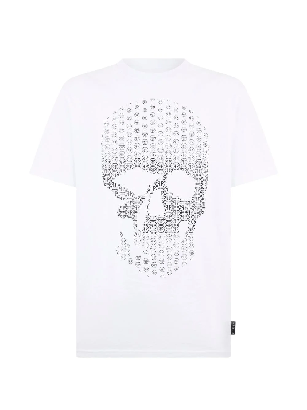 round-neck skull-detail T-shirt Highlights - White - Strass detail - Skull motif - Round neck - Short sleeves - Cotton Imported Composition Cotton 100%, glass 100% Washing instructions Read Manufacturer Guidelines