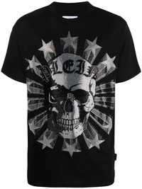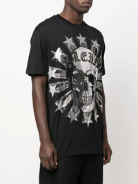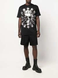 round neck T-shirt black cotton graphic print to the front round neck short sleeves straight hem Imported Composition Cotton 100% SIZE & FIT Model measurements Height 6 ft 0 in(1.84 m) Bust/Chest 35.82 in(91 cm) Hips 37 in(94 cm) Waist 28.34 in(72 cm) FittingInformation This piece fits true to size. We recommend you get your regular size Cut for a relaxed fit Made with a mid-weight fabric