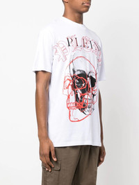 round neck T-shirt white cotton graphic print to the front round neck short sleeves straight hem Imported Composition Cotton 100% SIZE & FIT Model measurements Height 6 ft 2 in(1.89 m) Bust/Chest 35.43 in(90 cm) Hips 38.58 in(98 cm) Waist 27.95 in(71 cm) FittingInformation This piece fits true to size. We recommend you get your regular size Cut for a relaxed fit Made with a mid-weight fabric Washing instructions Hand Wash