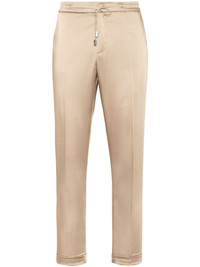 satin tailored trousers Highlights - Sesame beige - Concealed fly and button fastening - Elasticated drawstring waistband - Two side inset pockets - Two rear jetted pockets Made in Italy Composition Lining: Polyamide 65%, Cotton 35% Outer: Polyester 96%, Elastane 4%