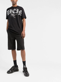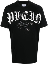 Scoprion logo-print T-shirt Channeling Philipp Plein's avant-garde style, this classic T-shirt is decorated with a studded scorpion motif on the front, blending in with the brand's recognisable logo. Imported Composition Cotton 100% SIZE & FIT Model measurements Height 6 ft 2 in(1.88 m) Bust/Chest 35.03 in(89 cm) Hips 35.82 in(91 cm) Waist 27.95 in(71 cm) FittingInformation This piece fits true to size. We recommend you get your regular size Cut for a relaxed fit Made with a mid-weight fabric Washing instructions Hand Wash