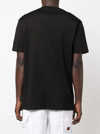 chest logo-print detail T-shirt jet black cotton logo print at the chest logo plaque round neck short sleeves straight hem Imported Composition Cotton 100% SIZE & FIT Model measurements Height 6 ft 0 in(1.84 m) Bust/Chest 35.82 in(91 cm) Hips 37 in(94 cm) Waist 28.34 in(72 cm) FittingInformation This piece fits true to size. We recommend you get your regular size Cut for a relaxed fit Made with a mid-weight fabric Washing instructions Hand Wash