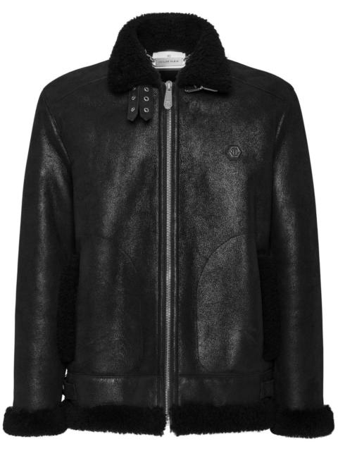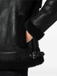 shearling biker jacket Highlights - Black - Front zip fastening - Side buckle fastening - Slip pockets to the sides - Logo patch to the rear Imported Composition Outer: Lamb Fur 100%, Lambskin 100% Lining: Lamb Fur 100%, Polyester 65%, Cotton 35% Washing instructions Specialist Cleaning