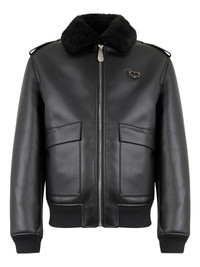 shearling-texture-collar jacket Highlights - Black - Faux fur collar - Zip fastening - Patch pockets - Ribbed hem - Ribbed cuffs Imported Composition Polyester 100%, Polyurethane 100%