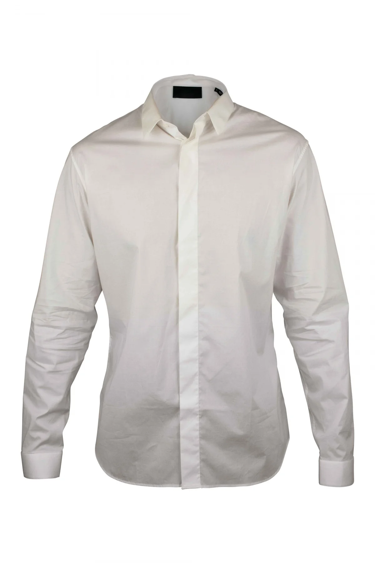 Off-white cotton shirt Philipp Plein. Concealed mother-of-pearl buttons. Made in Italy.