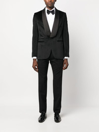single-breasted velvet blazer Highlights - Black - Velvet effect - Logo print to the side - Shawl lapels - Front button fastening - Chest welt pocket - Two front jetted pockets - Long sleeves - Curved hem Made in Italy Composition Lining: Viscose 51%, Acetate 49% Outer: Polyester 100% SIZE & FIT Model measurements Height 6 ft 2 in(1.88 m) Bust/Chest 36.61 in(93 cm) Hips 35.82 in(91 cm) Waist 27.95 in(71 cm) FittingInformation Designed for a slim fit, offering a comfortable fit that sits just away from the body The vented hem offers movement at the rear Made from a midweight non-stretch fabric This piece fits true to size – take your usual size