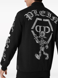 skeleton-print jersey tracksuit Highlights - Black/white - Cotton blend - Jersey texture - Sequin embellishment - Skeleton print - Top: - Stand-up collar - Long sleeves - Logo patch at the chest - Two side slit pockets - Ribbed cuffs and hem - Front zip fastening - Bottoms: - Tapered leg - Elasticated drawstring waistband - Logo patch to the front - Two side inset pockets - Elasticated cuffs Imported Composition glass 100%, Cotton 88%, Polyester 12% Washing instructions Machine Wash