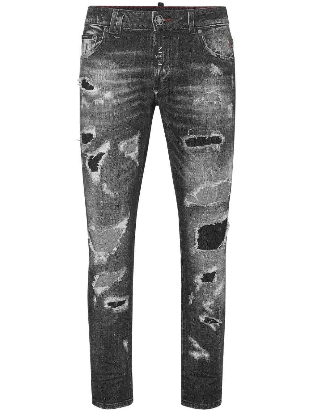 skinny jeans Highlights - Black - Stretch-cotton - Denim - Stonewashed - Distressed finish - Concealed fly and button fastening - Belt loops - Whiskering effect at the thighs - Classic five pockets - Ripped detailing - Applique logo - Skinny cut Made in Italy Composition Cotton 99%, Elastane 1%