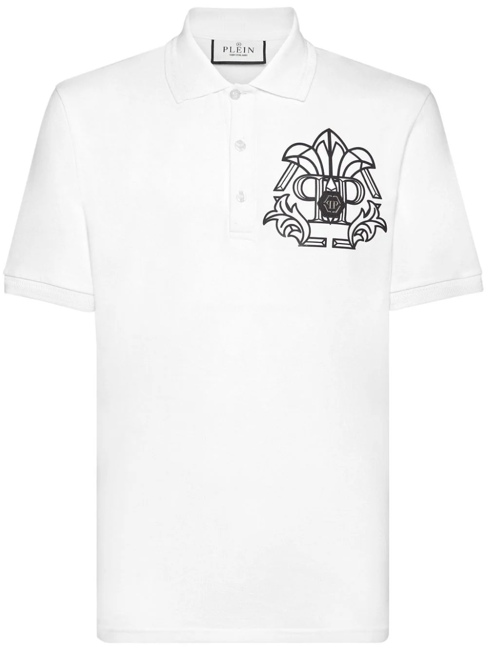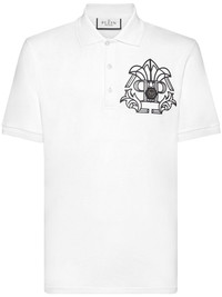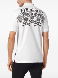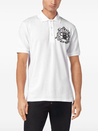 Skull & Bones pique polo shirt Highlights - White/black - Cotton - Pique weave - Front button placket - Polo collar - Logo print at the chest - Applique logo - Short sleeves - Logo print to the rear - Crystal embellishment - Short side slits Imported Composition Cotton 100%, Glass Fiber 100%
