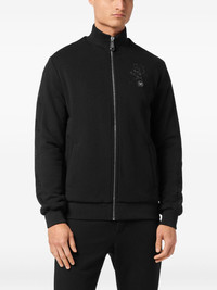 skull-embellished bomber jacket Highlights - Black - Front zip fastening - Two side welt pockets - Applique logo - Long sleeves Imported Composition Cotton 88%, Polyester 12% Washing instructions Read Manufacturer Guidelines