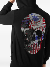 skull-embellished zip-up hoodie Highlights - Black - Skull motif - Crystal embellishment - Zip fastening - Hooded - Logo patch Imported Composition Fabric 100% Washing instructions Read Manufacturer Guidelines